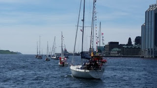 Shearwater Yacht club hosts this event each year. This year the motor/sail past was received by a Reviewing Dignitary aboard HMCS CHARLOTTETOWN, who received the salute.